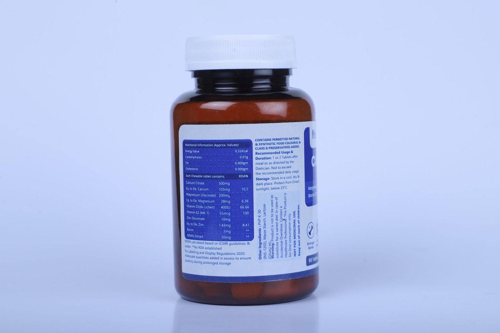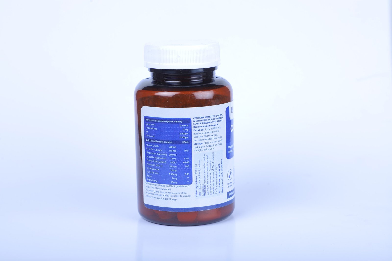 Chew 1–2 tablets daily after meals or as directed by a dietician or healthcare professional. Do not exceed the recommended daily intake.