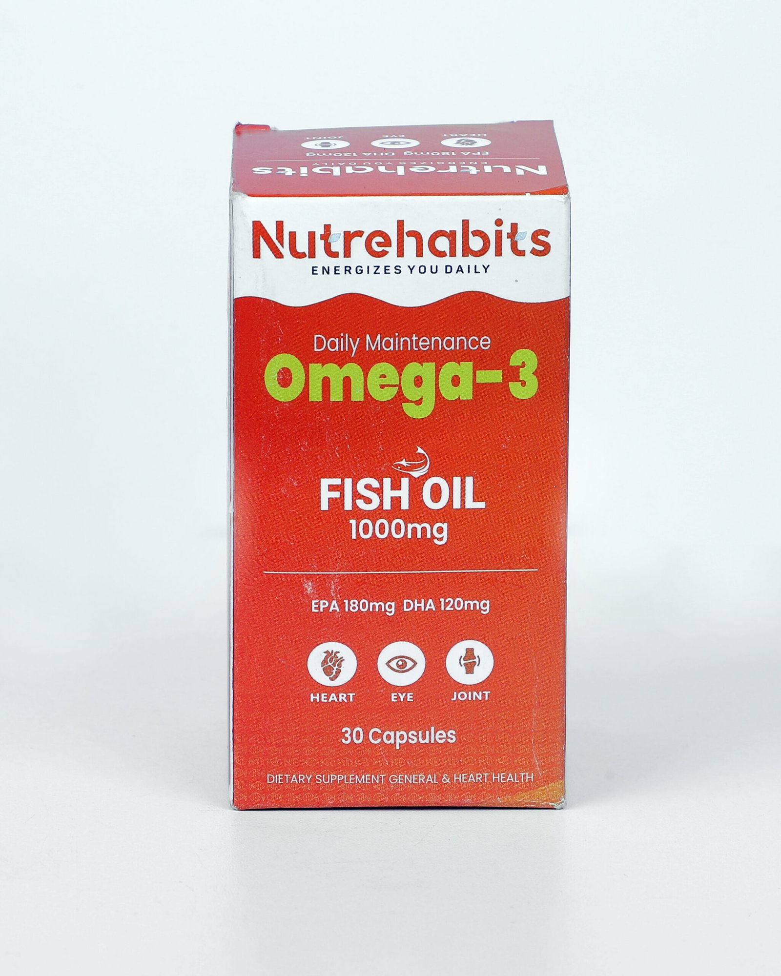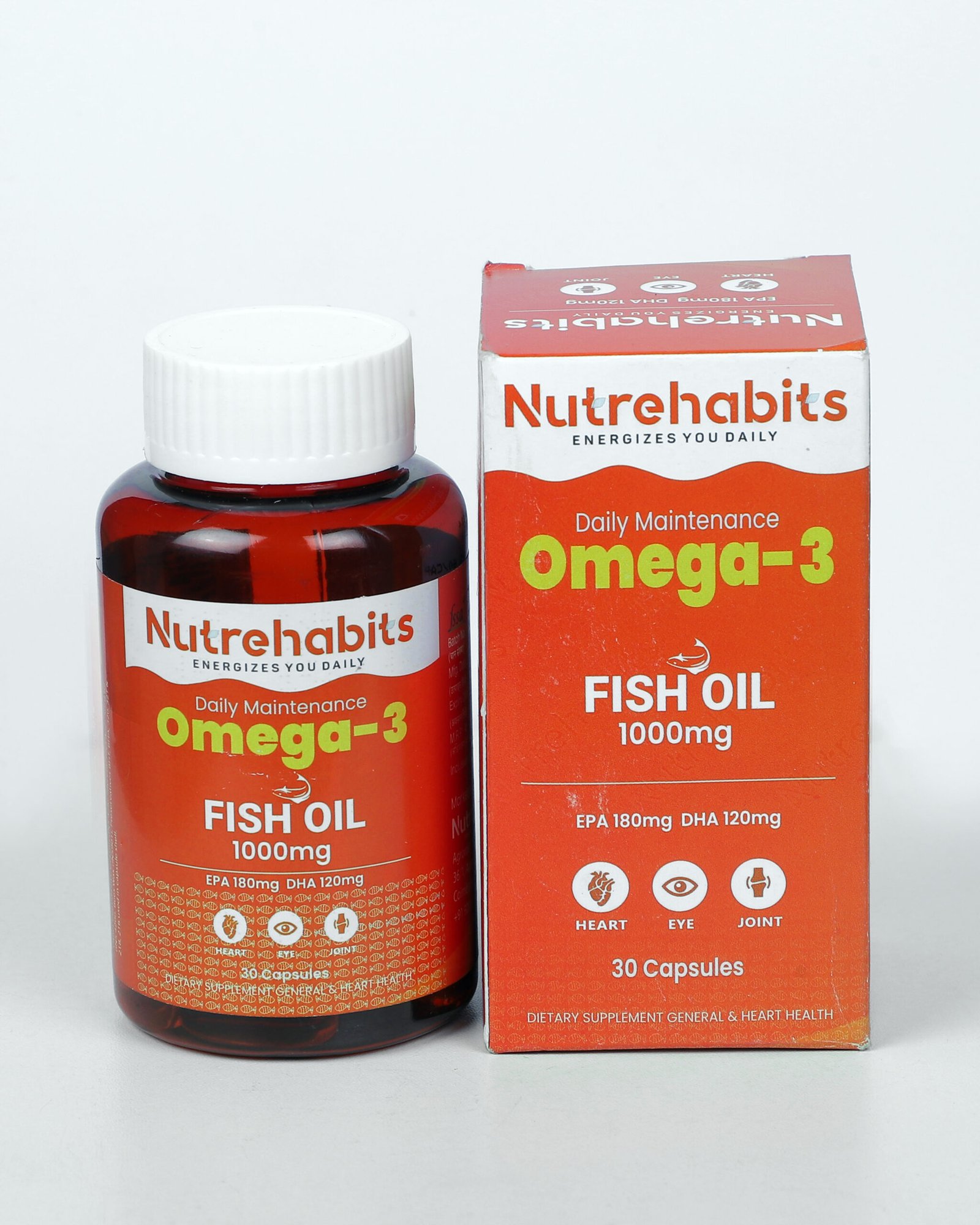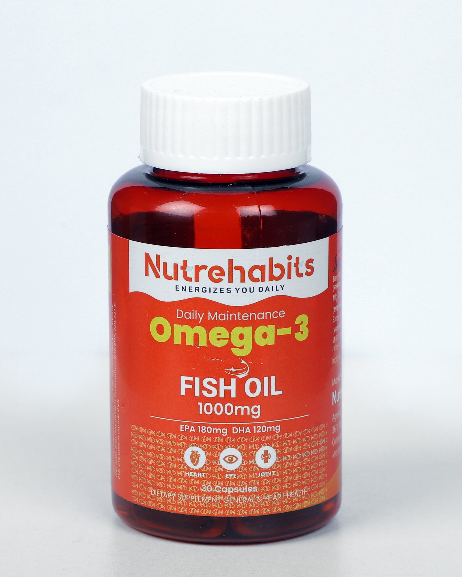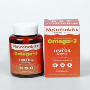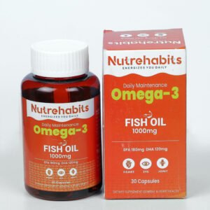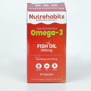 Nutrehabits Omega-3 Fish Oil 1000 mg is a daily maintenance supplement formulated to support heart, eye, and joint health. Each softgel provides high-quality fish oil with EPA and DHA, essential omega-3 fatty acids known to support cardiovascular wellness, brain function, and joint flexibility. Ideal for everyday use, it helps maintain overall health and vitality as part of a balanced lifestyle.